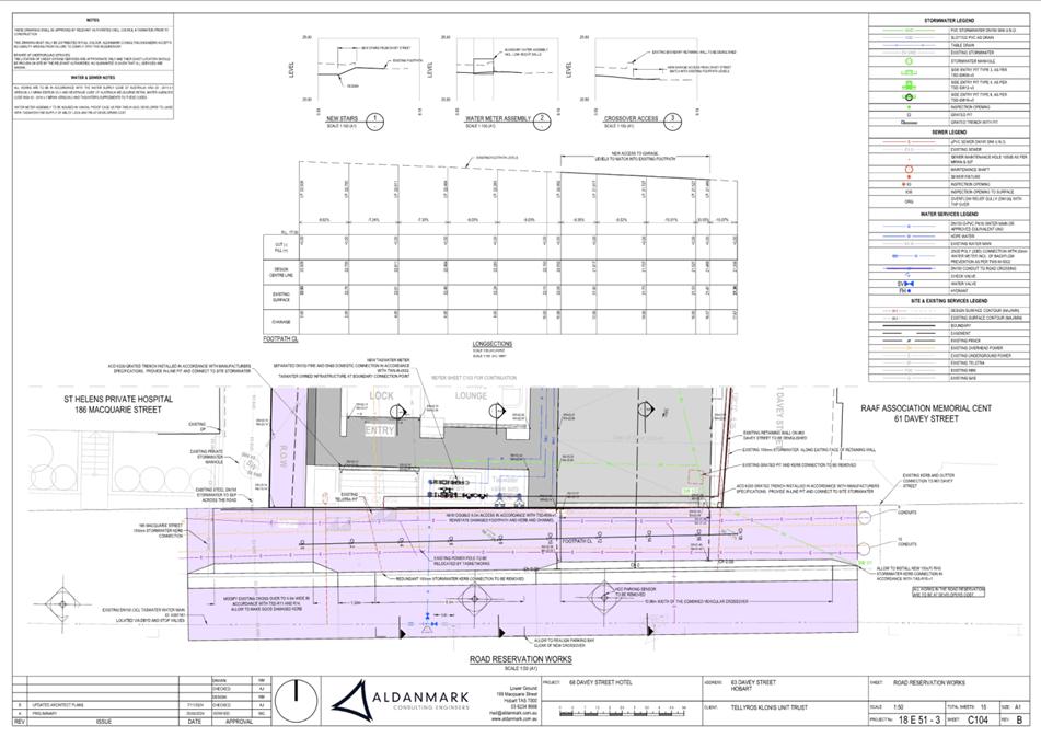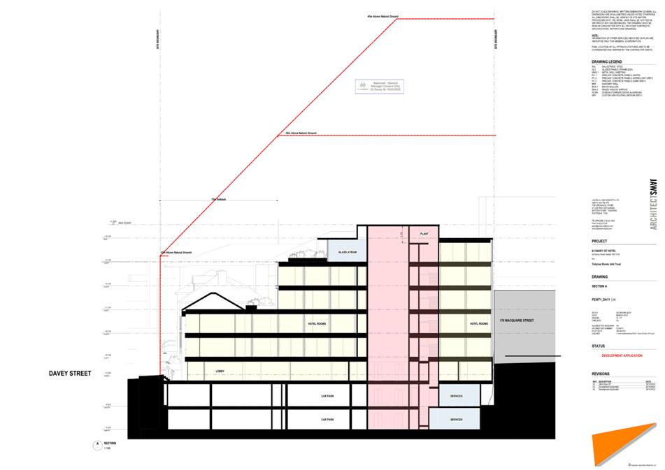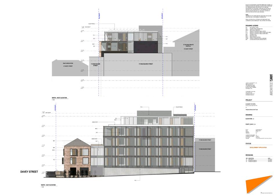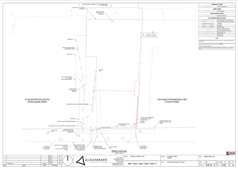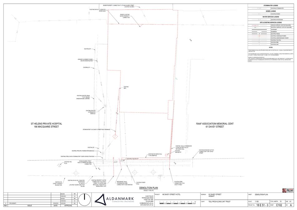 7.1.2 63 Davey Street, 61 Davey Street, 186 Macquarie Street Hobart and Adjacent Road Reserve - Demolition, New Building for Visitor Accommodation and Hotel Industry (Bar) and Associated Infrastructure Works