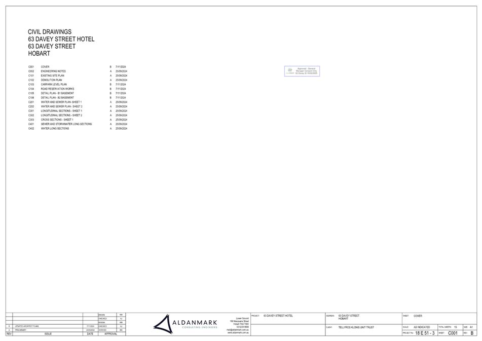 Attachment e PLN-HOB-2024-0621 - 63 DAVEY ST HOBART TAS 7000 - Attachment E - Planning Referral Officer Development Engineering Report......................................................................................... 503